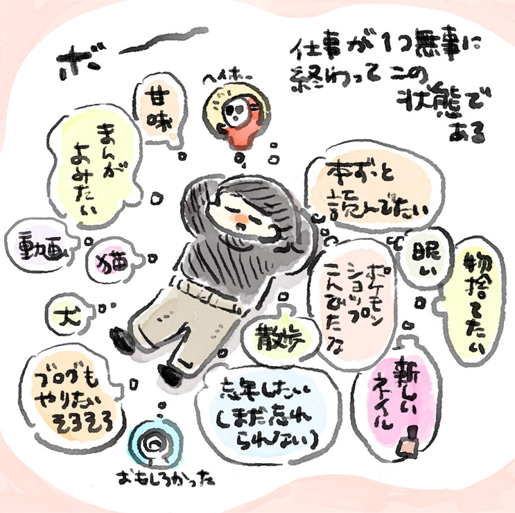 春はしばらくのんびりしていたのですが、畑を育てるゲームとか、街を作るゲームとか、積読した本を読んだりとか、好きな漫画読み返したりとか、かと思えば東京に行ったり、地元に帰省したり、友達と花見したり…インドアなのかアウトドアなのか…。やりたいことがいっぱいあり、だらだらもしたく…。バランスが難しい。